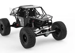 The GA44 axle, with a metal diff locker and hardened carbon steel CVAs, is designed for hard core rock crawlers in mind. This high endurance one-piece axle is made of high strength materials and looks very “scale”. It is equipped with uniquely designed tilted differential covers to help decrease damage to the differential covers. THe kingpin angle is set to keep the scrub radius to a minimum, allowing your steering servo work at it’s full potential. This is combined with a Zero-Ackerman steering system to ensure maximum turning radius and smooth motion even on rough off-road terrain.Adjustable caster angle can also help in tight radius turns. A “High steer” knuckle arm system increases the approach angle, so the vehicle can climb over the obstacles more easily than typical trucks.