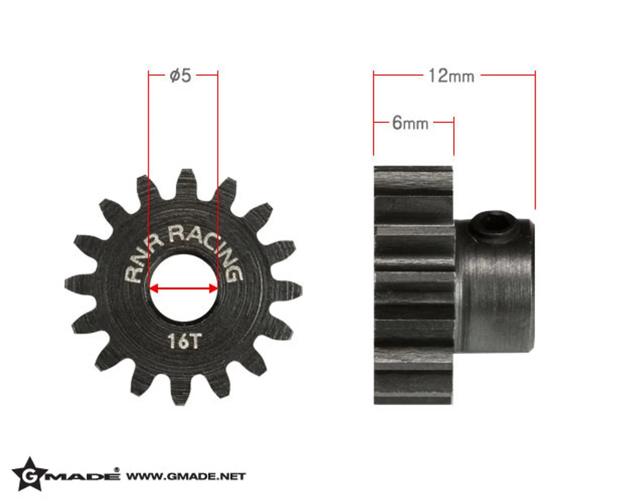 MOD1 5mm hardened steel pinion gear 16 tooth x 1